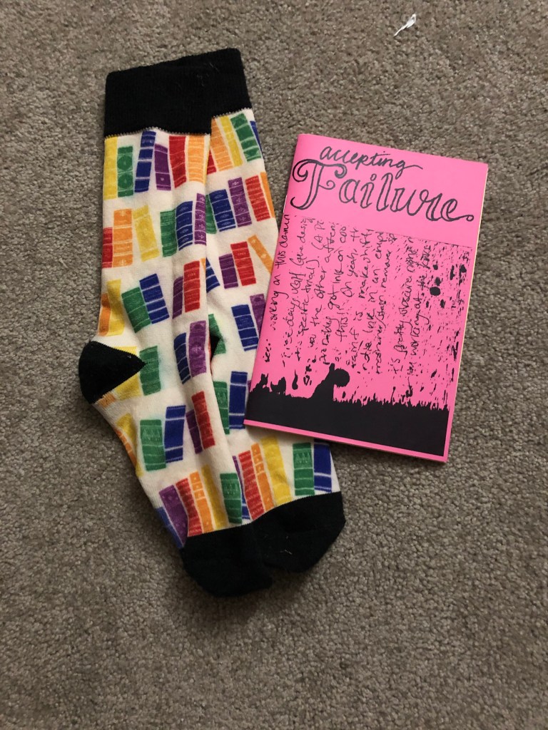 The zine Accepting Failure ended up being an endearingly honest portrait of a daughter trying not to “fail” based on her parents’ standards. Just like me, Ana López contends with the high expectations of others and switches from wanting to pursue science to wanting to pursue something creative. For me, this meant becoming an English major. For her, it meant becoming a balloon artist. López discusses how we have to define what failure means on a personal basis, otherwise we will never feel fulfilled or successful. Even though it’s scary, because the blame falls on yourself, instead of being able to blame others. A line that really resonated with me was, “I’ve made myself a lot happier by accepting what I know about myself over what others perceive.” This is something I’ve gotten better at, but I definitely fall into the habit of obsessing over how others see me. We all deserve to be in charge of our own failures and successes.